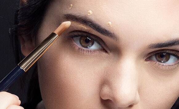 Нанесите корректор на 3 точки над бровью — над внутренним уголком, в центре и в конце линии роста. Затем нанесите корректор под бровью и вдоль надбровной дуги. Растушуйте легкими похлопывающими движениями.
