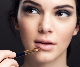 Нанесите средство ухода за губами «Объем + Контур» New Dimension. Сначала подготовьте губы с помощью бальзама для губ «Объем». Смешайте каплю сыворотки для губ «Контур» с хайлайтером. Растушуйте вокруг контура губ, используя кисть для нанесения корректора.