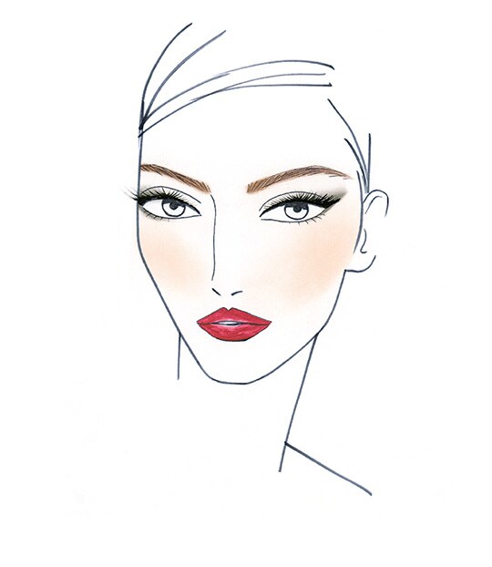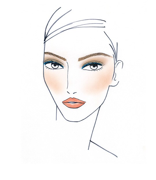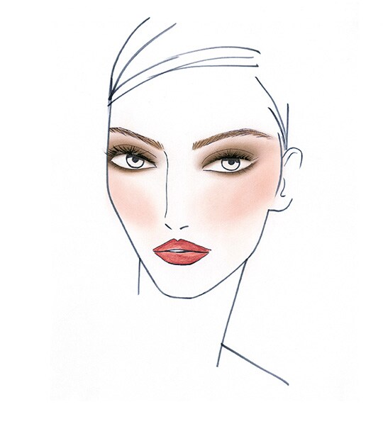 Нанеси на веки оттенок № 3 пятицветных моделирующих теней для век PURE COLOR ENVY Fiery Saffron. Растушуй в направлении бровей. Нанеси оттенок № 5 вдоль линии роста ресниц. Заверши макияж глаз тушью для ресниц.